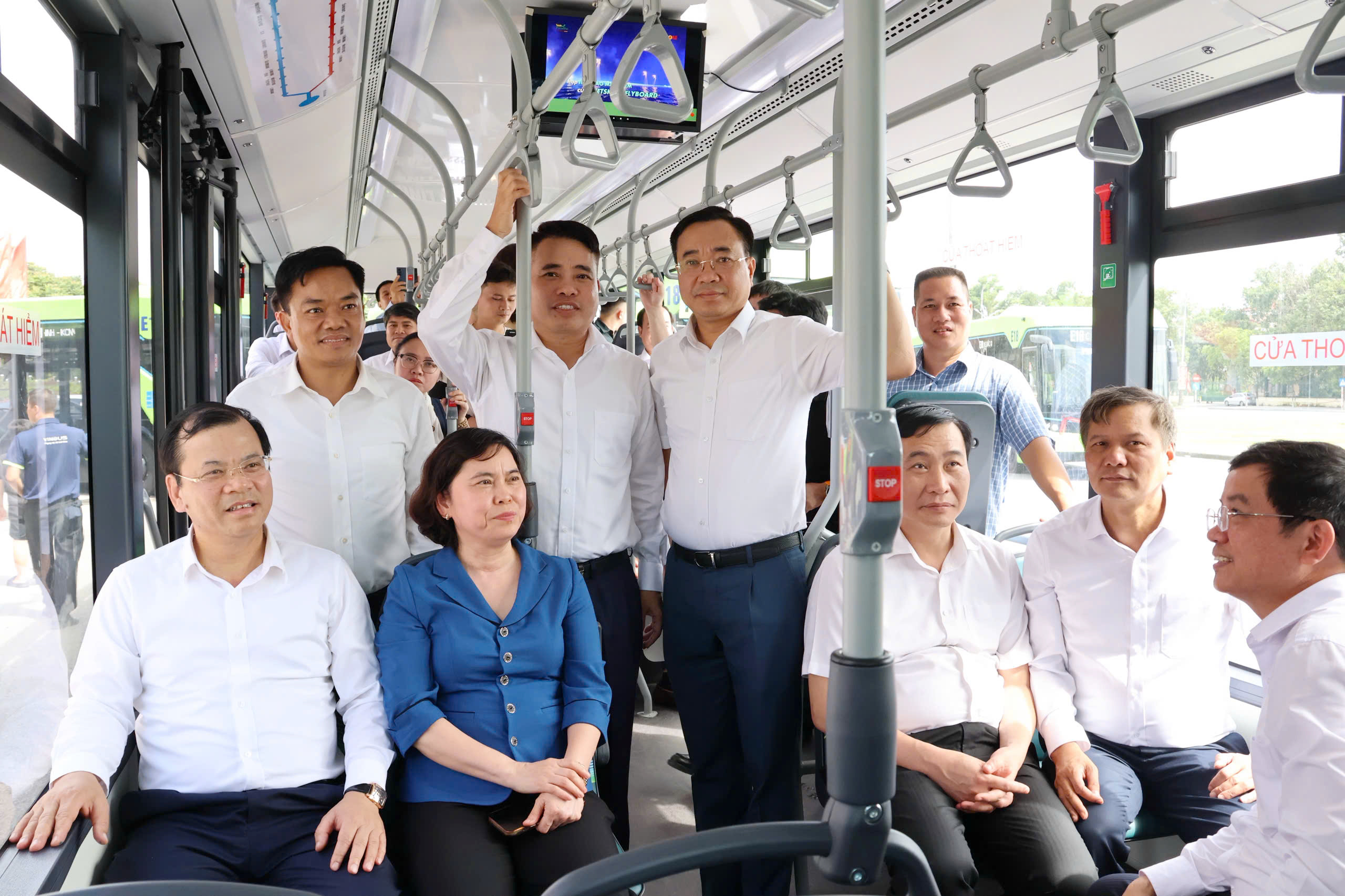 Các đồng chí lãnh đạo trải nghiệm tuyến xe buýt điện.