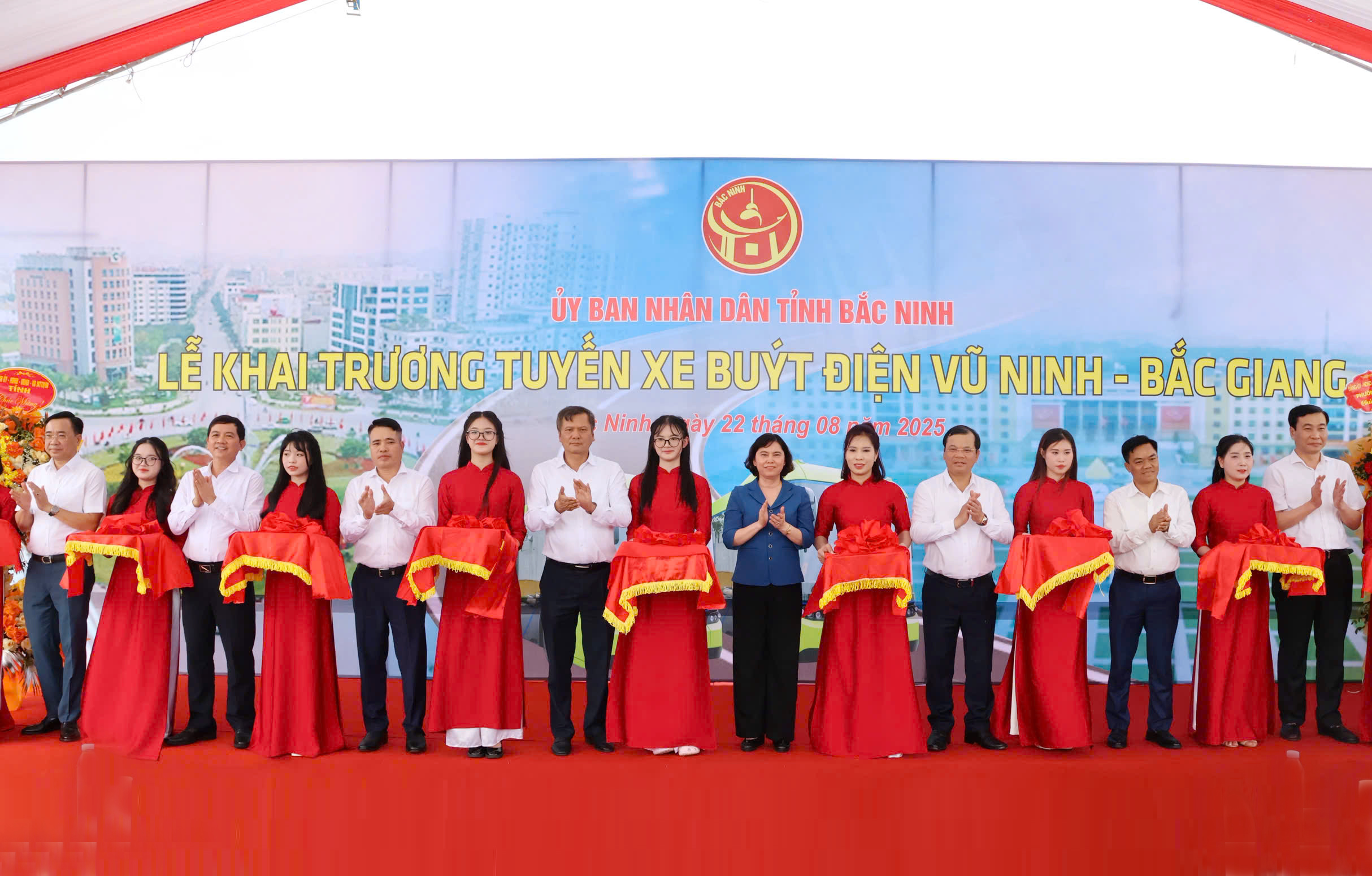 Ngay sau nghi thức cắt băng khai trương tại buổi lễ, các đồng chí lãnh đạo tỉnh, lãnh đạo các sở, ngành, địa phương và đông đảo Nhân dân trên địa bàn đã trải nghiệm thực tế trên tuyến xe buýt điện Vũ Ninh - Bắc Giang.