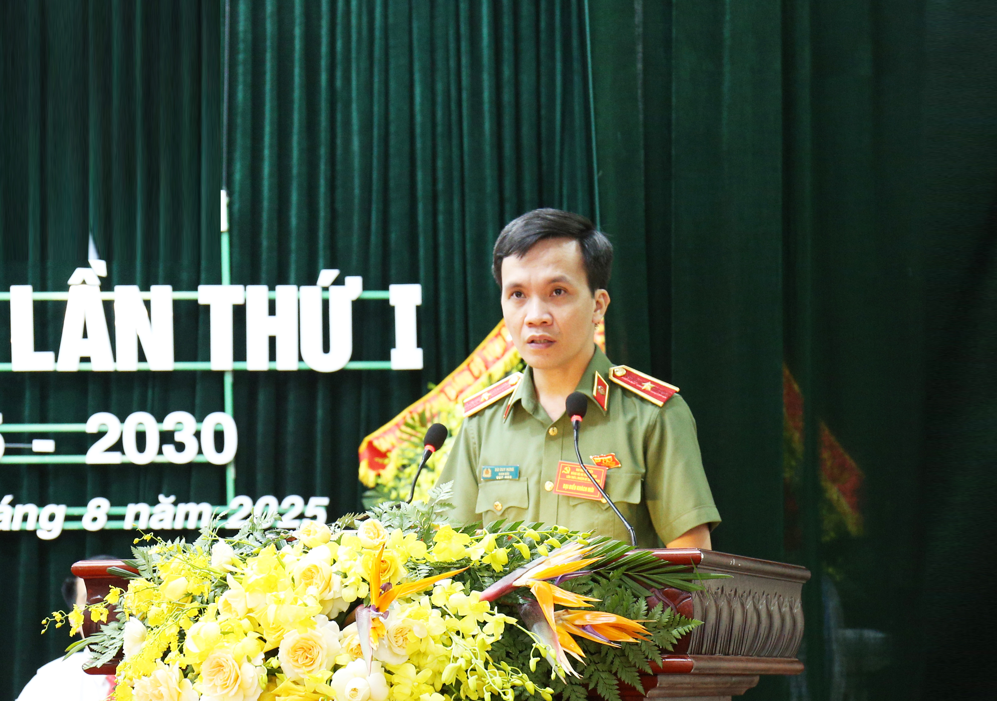 Giám đốc Công an tỉnh Bùi Duy Hưng phát biểu chỉ đạo Đại hội.