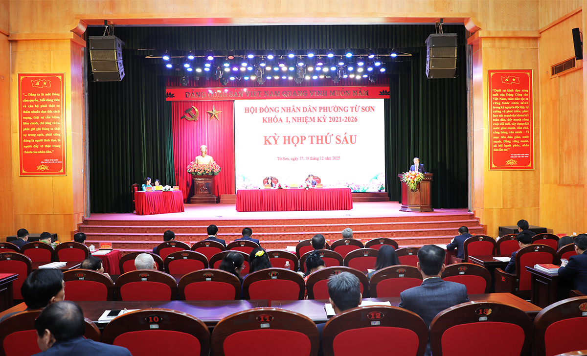 (BNP) - Sáng 17/12, HĐND phường Từ Sơn khóa I, nhiệm kỳ 2021 - 2026 tổ chức khai mạc Kỳ họp thứ Sáu nhằm đánh giá kết quả thực hiện nhiệm vụ phát triển kinh tế - xã hội năm 2025, phương hướng nhiệm vụ năm 2026 và quyết nghị một số nội dung quan trọng khác.