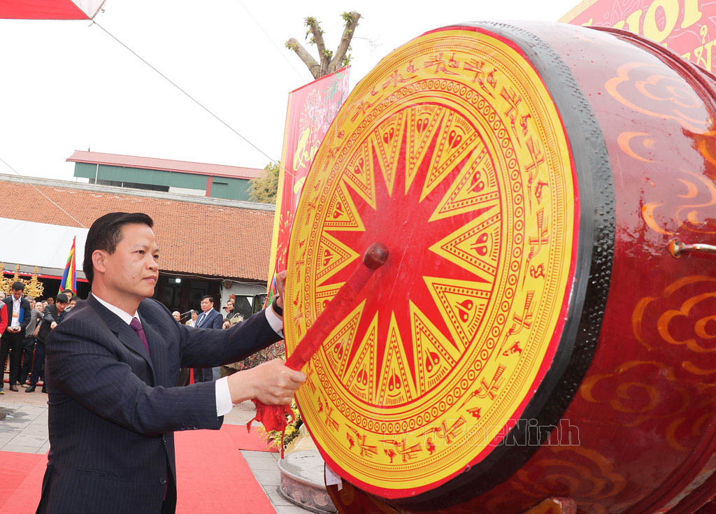 Chủ tịch UBND tỉnh Vương Quốc Tuấn đánh trống khai hội Kinh Dương Vương.