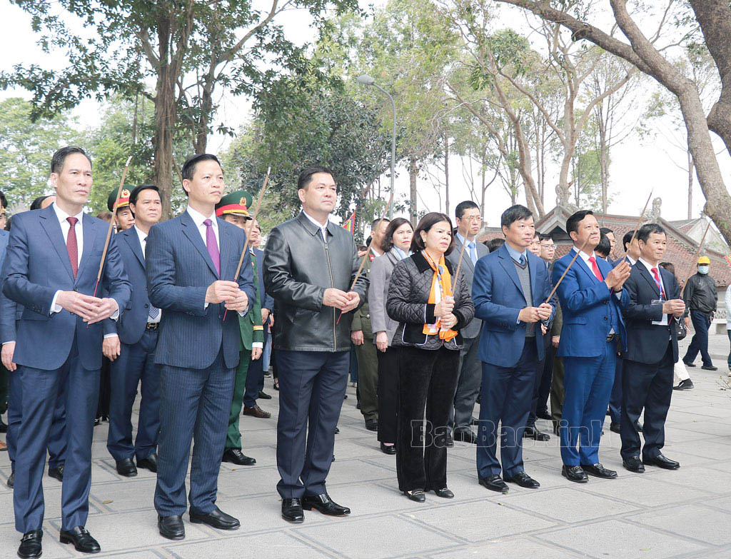 Dự lễ dâng hương có các đồng chí: Trung tướng Nguyễn Hồng Thái, Ủy viên Trung ương Đảng, Tư lệnh Quân khu 1; Nguyễn Hương Giang, Phó Bí thư Thường trực Tỉnh ủy, Chủ tịch HĐND tỉnh; Vương Quốc Tuấn, Ủy viên Dự khuyết Trung ương Đảng, Phó Bí thư Tỉnh ủy, Chủ tịch UBND tỉnh; các đồng chí Ủy viên Ban Thường vụ Tỉnh ủy; lãnh đạo HĐND, UBND, Ủy ban MTTQ tỉnh và thị xã Thuận Thành cùng đông đảo nhân dân và du khách thập phương.