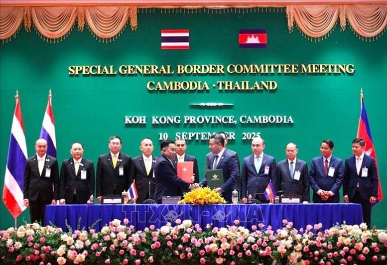 Thông tấn xã Campuchia (AKP) đưa tin, cuộc họp đặc biệt đầu tiên Ủy ban Biên giới chung (GBC) Campuchia-Thái Lan diễn ra sáng 10/9 tại tỉnh Koh Kong đã kết thúc với những kết quả tích cực, vạch ra các bước đi thiết thực cần thiết để thực hiện đầy đủ và hiệu quả thỏa thuận ngừng bắn.