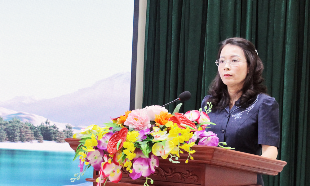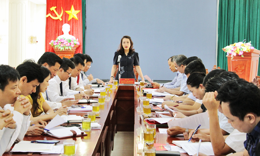 Phó Bí thư Thường trực Tỉnh ủy Nguyễn Thị Hương phát biểu tại buổi làm việc.