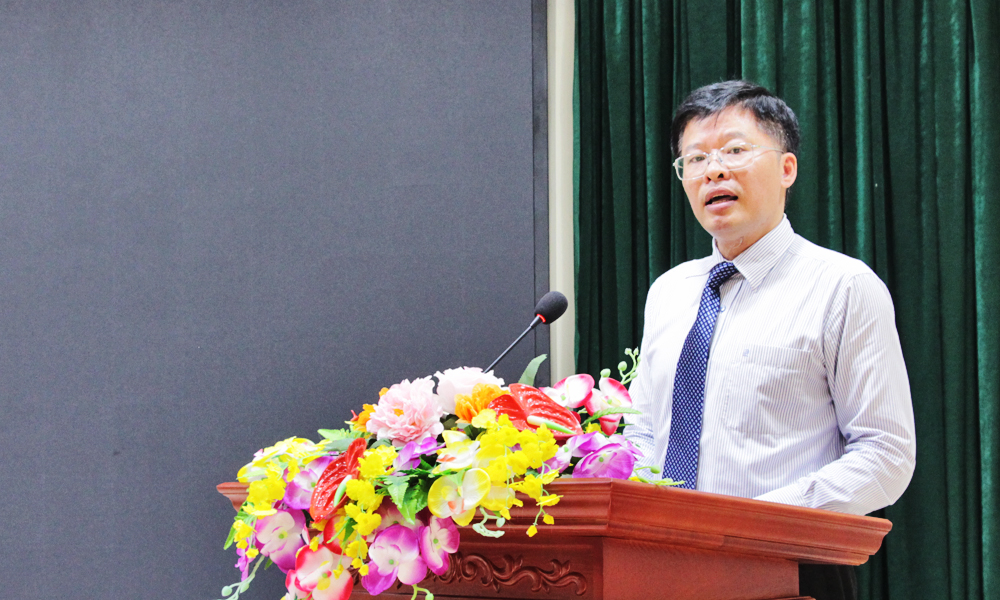 Đồng chí Nguyễn Trung Hiền, Tỉnh ủy viên, Tổng Biên tập Báo và Phát thanh, Truyền hình Bắc Ninh báo cáo tình hình hoạt động của cơ quan.