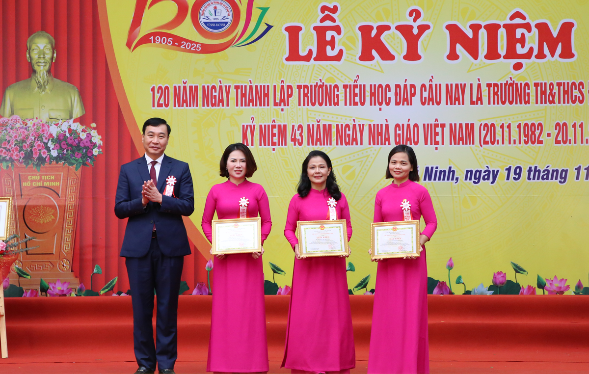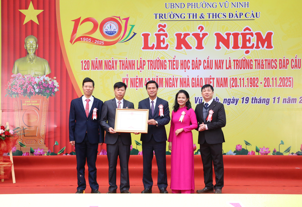 Nhân dịp này, Trường Tiểu học và Trung học cơ sở Đáp Cầu vinh dự được nhận Bằng khen của Chủ tịch UBND tỉnh vì có thành tích xuất sắc trong công tác dạy và học; nhiều cá nhân tiêu biểu được Phường Vũ Ninh khen thưởng./.