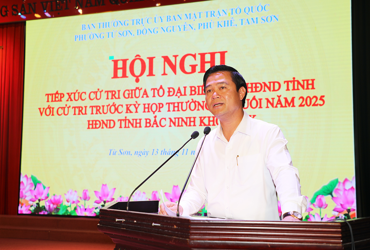 Phát biểu với cử trị các phường, Phó Chủ tịch UBND tỉnh Lê Xuân Lợi thông tin về tình hình chung sau khi thành lập tỉnh Bắc Ninh mới; ghi nhận, đánh giá cao sự nỗ lực của Đảng bộ, chính quyền và nhân dân các phường Từ Sơn, Đồng Nguyên, Tam Sơn, Phù Khê cũng như các địa phương khác trong tỉnh góp phần hoàn thành các chỉ tiêu, nhiệm vụ phát triển kinh tế - xã hội của tỉnh đề ra trong năm 2025, với nhiều chỉ tiêu tiếp tục nằm trong tốp đầu cả nước. An ninh - quốc phòng được giữ vững, đời sống mọi mặt của người dân không ngừng được cải thiện, nâng cao.