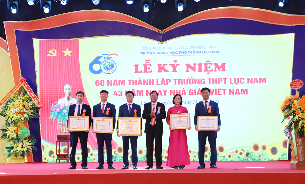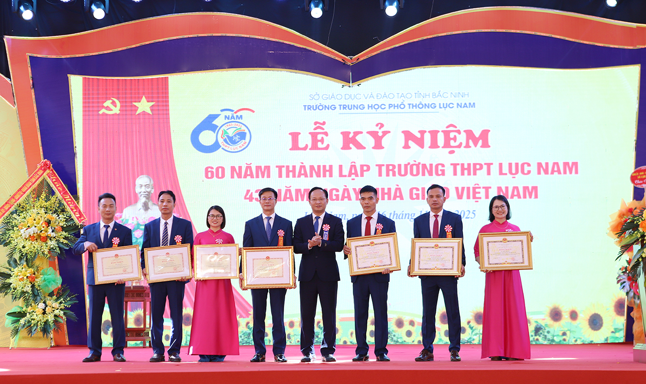 Tại lễ kỷ niệm, Phó Chủ tịch UBND tỉnh đã trao Bằng khen của Bộ trưởng Bộ GD&ĐT cho tập thể cán bộ, giáo viên Trường THPT Lục Nam. Thay mặt lãnh đạo tỉnh, Phó Chủ tịch UBND tỉnh cũng tặng Bằng khen của Chủ tịch UBND tỉnh cho các cán bộ, giáo viên nhà trường có thành tích xuất sắc trong công tác GD&ĐT năm học 2024 -2025; tặng hoa và 1 Smart TV cho nhà trường. Đồng chí Nguyễn Văn Thêm, Phó Giám đốc Sở GD&ĐT trao Quyết định công nhận Trường đạt chuẩn quốc gia mức độ 2 và tặng Giấy khen của Sở GD&ĐT cho tập thể, cá nhân xuất sắc năm học 2024 - 2025.