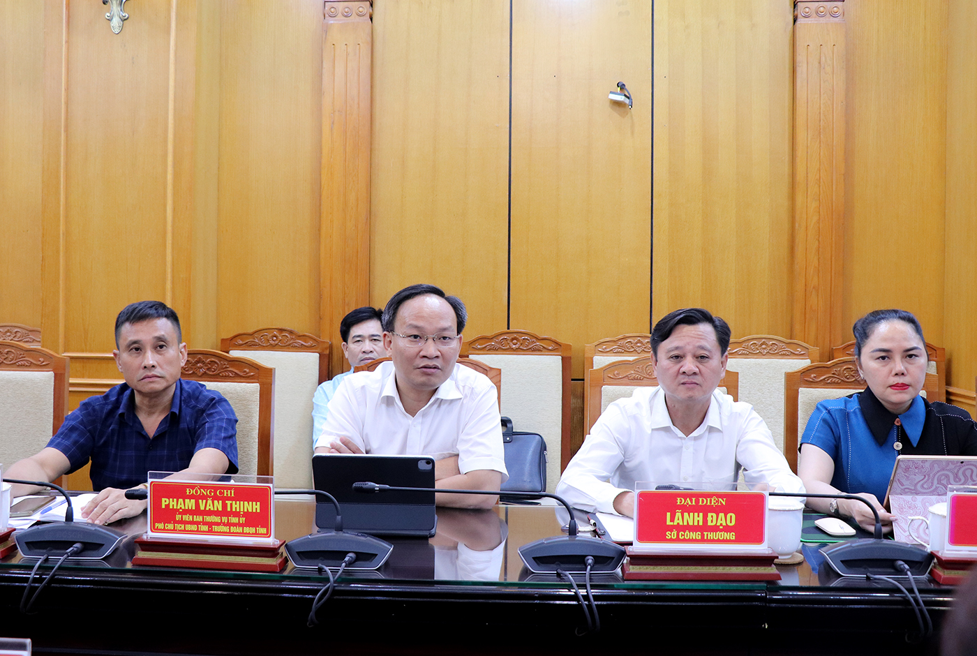 Phó Chủ tịch UBND tỉnh Phạm Văn Thịnh (thứ 2 từ trái qua) trao đổi tại buổi làm việc.