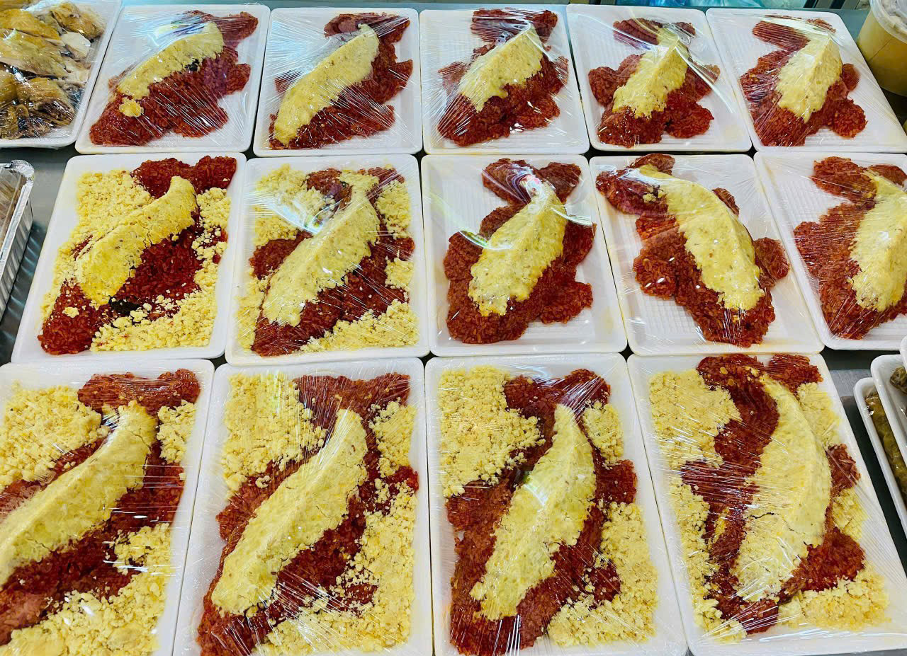 Xôi hình cá chép bày được trong mâm cỗ cúng ông Công, ông Táo.