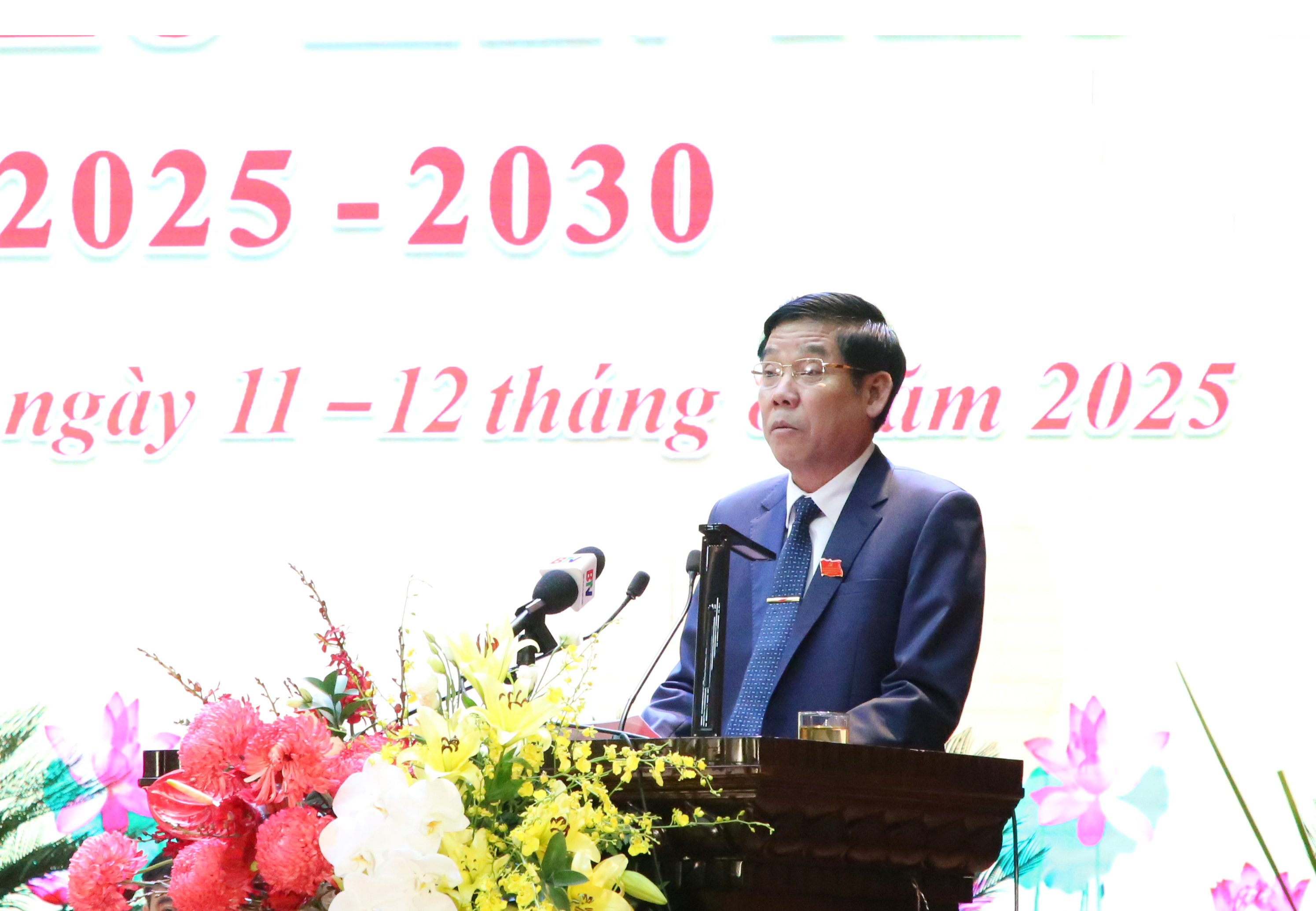 Bí thư Tỉnh ủy Nguyễn Văn Gấu phát biểu chỉ đạo Đại hội.