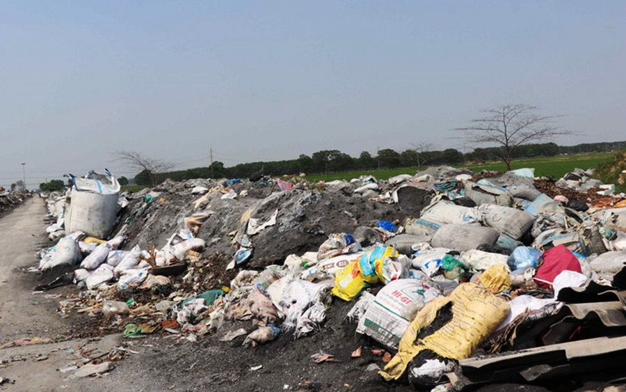 Bãi tập kết xỉ nhôm tại làng nghề Văn Môn.