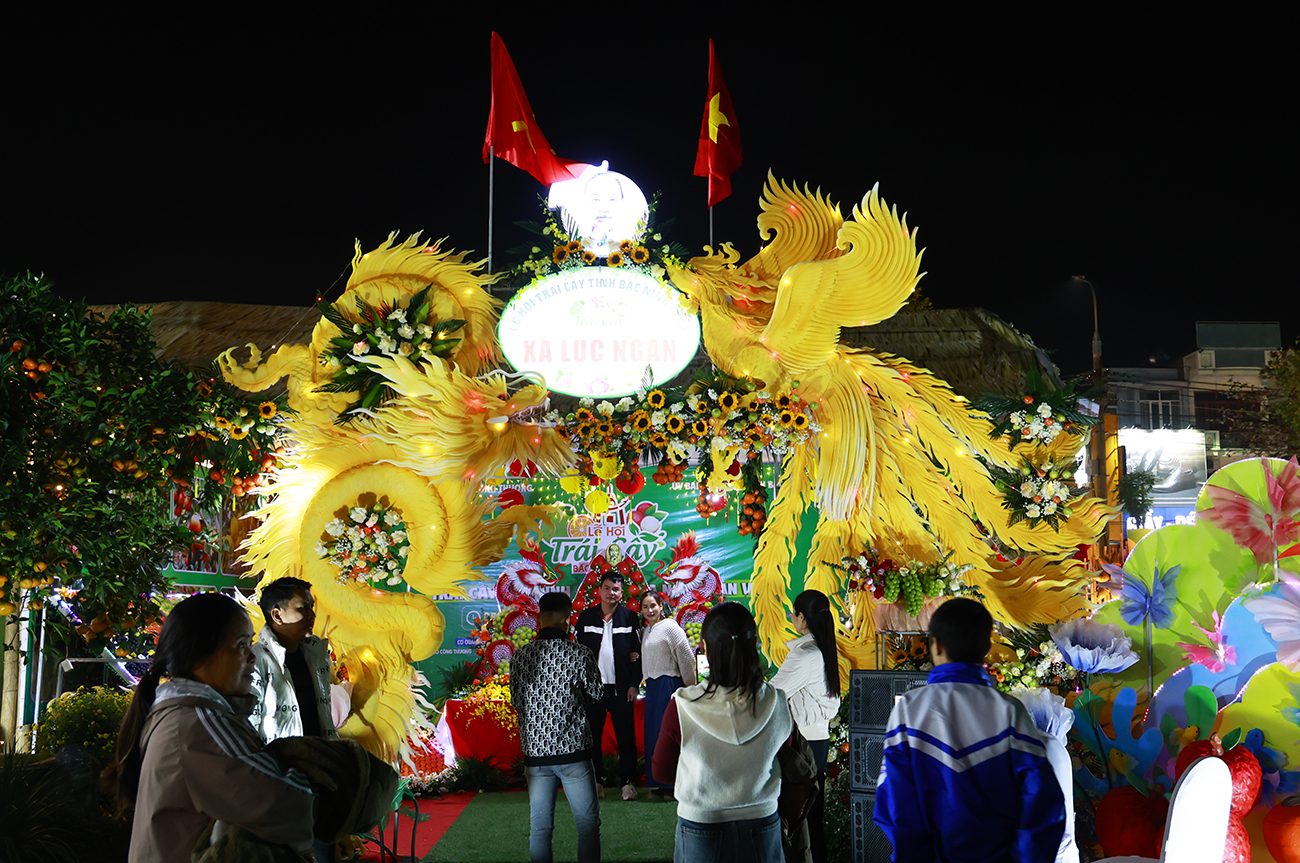 Cổng gian trưng bày của xã Lục Ngạn thu hút du khách tham quan và check in.