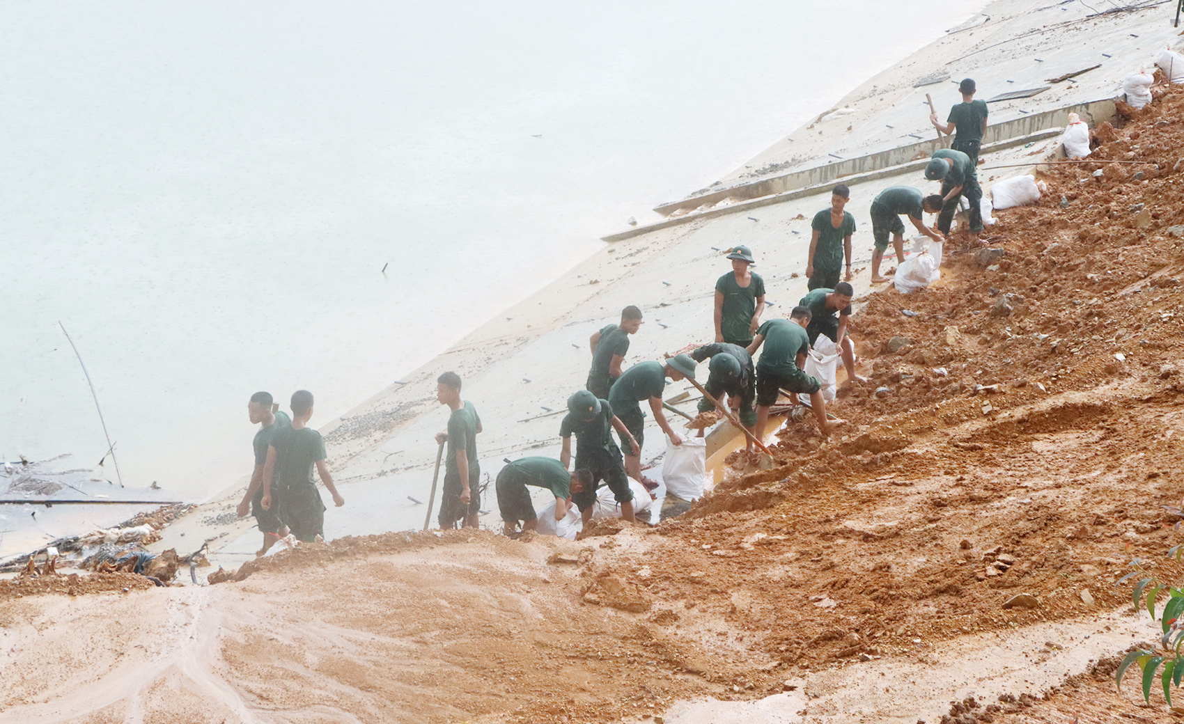 Khẩn trương huy động lực lượng, vật tư, phương tiện, trang thiết bị triển khai xử lý giờ đầu các sự cố đã xảy ra, đảm bảo an toàn chống lũ, bão của đê, không để sự cố phát triển thêm.