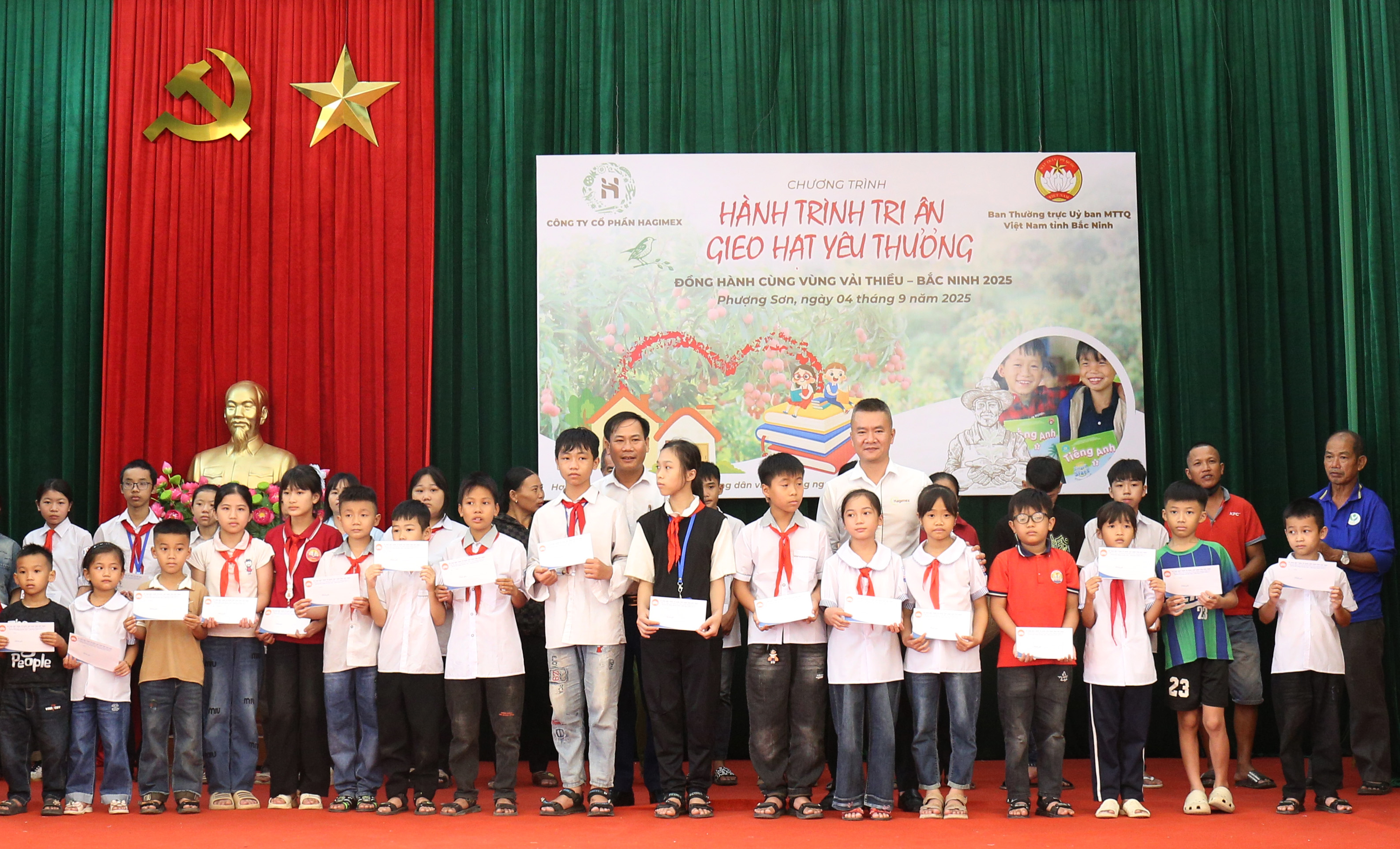 Với chủ đề “Hành trình tri ân gieo hạt yêu thương”, tại Chương trình, Công ty Cổ phần Hagimex trao kinh phí ủng hộ Quỹ “Vì người nghèo” tỉnh với tổng số tiền 210 triệu đồng để hỗ trợ xây dựng nhà và tặng quà cho học sinh là con hộ nghèo, cận nghèo, hộ có hoàn cảnh khó khăn tại phường Phượng Sơn.
