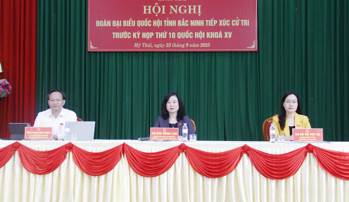 Báo Tiền Phong đưa tin: Ngày 23/9, Đoàn đại biểu Quốc hội tỉnh Bắc Ninh tiếp xúc cử tri tại xã Mỹ Thái trước kỳ họp thứ 10 Quốc hội khóa XV. Bộ trưởng Bộ Y tế Đào Hồng Lan dự tiếp xúc cử tri.