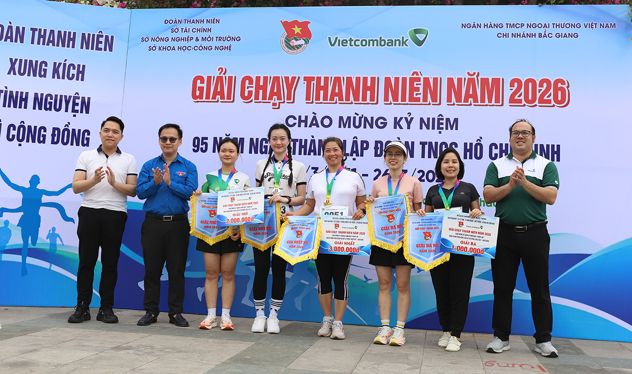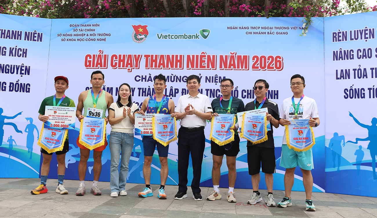 (BNP) - Sáng 22/3, Đoàn Thanh niên các sở: Nông nghiệp và Môi trường, Tài chính, Khoa học - Công nghệ thuộc UBND tỉnh Bắc Ninh phối hợp với Ngân hàng TMCP Ngoại thương chi nhánh Bắc Giang tổ chức Giải chạy Thanh niên năm 2026. Đây là hoạt động thiết thực của Đoàn Thanh niên các cơ quan thuộc UBND tỉnh hướng tới kỷ niệm 95 năm Ngày thành lập Đoàn TNCS Hồ Chí Minh (26/3/1931 - 26/3/2026).