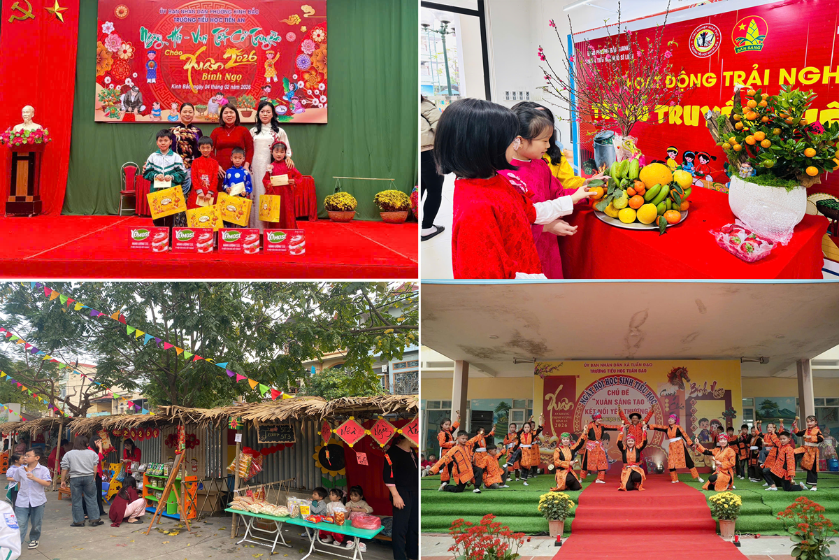 Những ngày giáp Tết, không khí tại các trường học náo nhiệt hơn. Ngoài những bài học trên sách vở, sân trường được chuyển đổi thành không gian được trang trí rực rỡ sắc màu cùng nhiều hoạt động trải nghiệm náo nhiệt, sôi nổi như: "Hội chợ Xuân", “Chợ quê”…