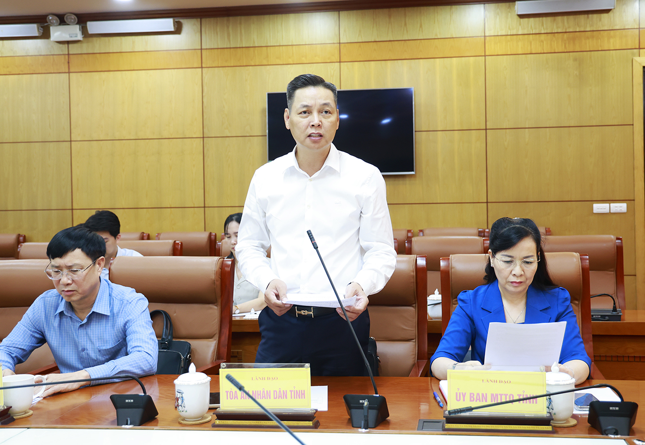 Chánh án Toà án nhân dân tỉnh Mai Anh Tài phát biểu tại hội nghị.