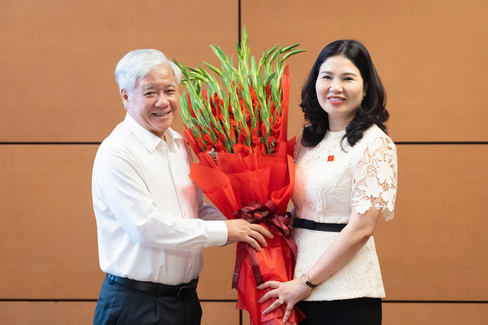 Đồng chí Đỗ Văn Chiến, Phó Chủ tịch Thường trực Quốc hội chúc mừng đồng chí Nguyễn Thị Hương được bầu giữ chức Trưởng Đoàn đại biểu Quốc hội tỉnh Bắc Ninh khóa XVI.