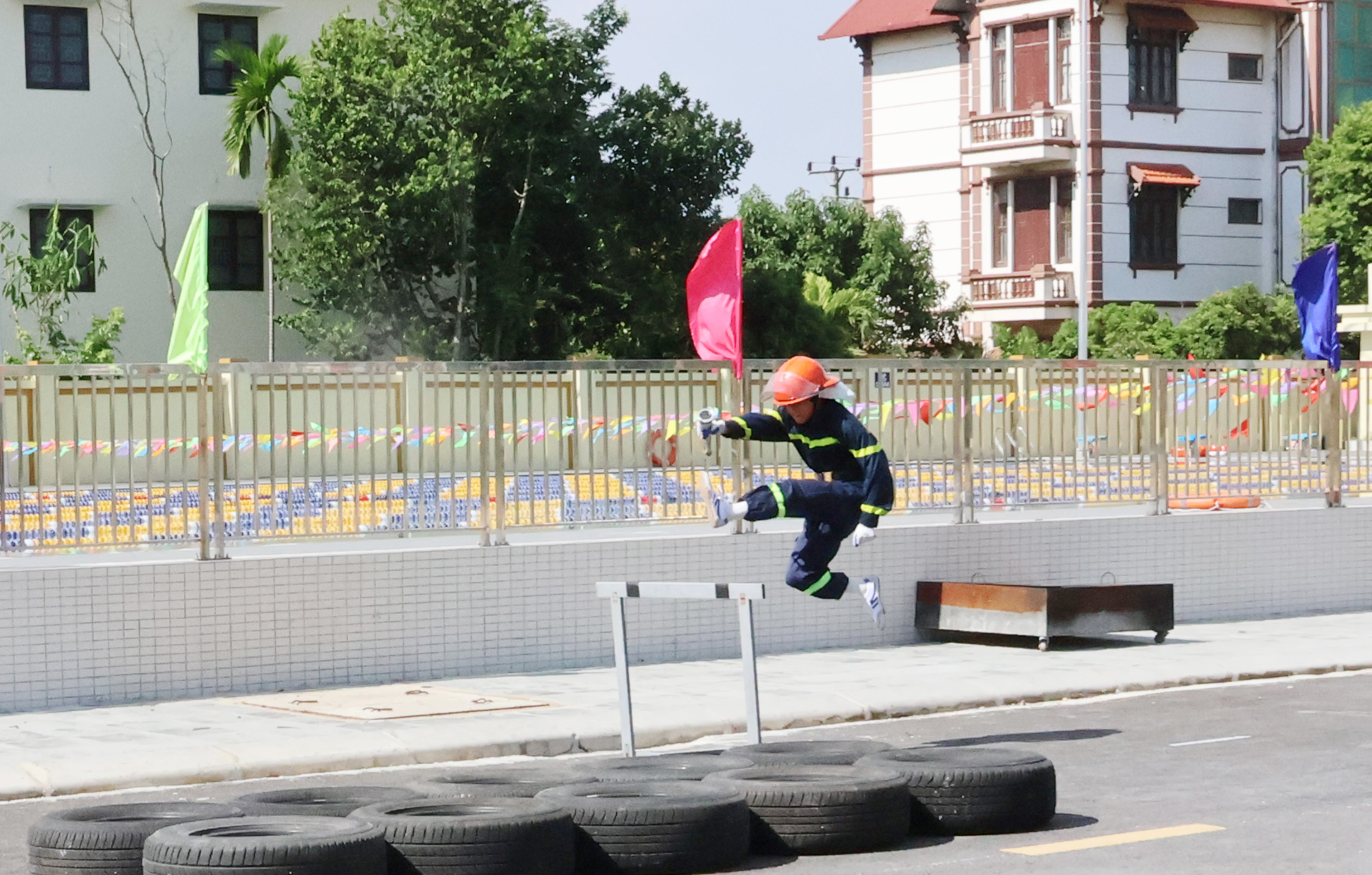 Trong đó, tại phần thi 4x100m chạy tiếp sức, cứu người và chữa cháy đòi hỏi các chiến sỹ Cảnh sát PCCC và CNCH phải có sức khỏe tốt, kỹ năng sử dụng các trang thiết bị, phương tiện thành thạo và phải nắm chắc các kỹ, chiến thuật để đảm bảo an toàn cho bản thân, phối hợp nhuần nhuyễn với các đồng đội để nhanh chóng vượt qua các chướng ngại vật, đưa người bị nạn ra nơi an toàn, đồng thời dập tắt đám cháy hiệu quả.