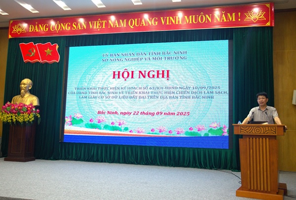Chiều ngày 22/9/2025, Sở Nông nghiệp và Môi trường tỉnh Bắc Ninh tổ chức Hội nghị hướng dẫn kỹ thuật triển khai thực hiện Chiến dịch làm sạch, làm giàu cơ sở dữ liệu (CSDL) đất đai theo Kế hoạch số 63/KH-UBND ngày 10/9/2025 của UBND tỉnh.