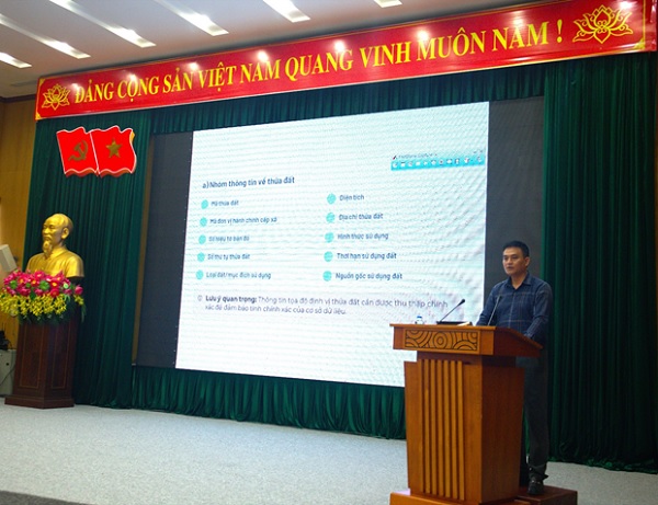 Đ/c Lê Hồng Văn - Giám đốc Trung tâm Thông tin và Dữ liệu đất đai, Bộ Nông nghiệp và Môi trường; Hướng dẫn công tác thu thập thông tin Giấy chứng nhận, thẻ căn cước công dân và scan tài liệu thu thập của người sử dụng đất, chủ sở hữu tài sản gắn liền với đất để các dữ liệu đất đai đảm bảo các tiêu chí: "Đúng - đủ - sạch - sống - thống nhất - dùng chung"; bảo đảm đồng bộ theo mô hình tổ chức chính quyền địa phương 2 cấp.