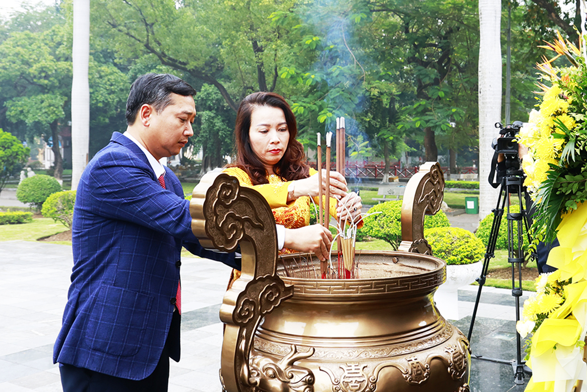 Provincial leaders attending the incense offering ceremony were Secretary of the Provincial Party Committee Nguyen Hong Thai; Standing Deputy Secretary of the Provincial Party Committee Nguyen Thi Huong; Chairman of the Provincial People's Committee Pham Hoang Son; Chairman of the Provincial People's Council Nguyen Viet Oanh.