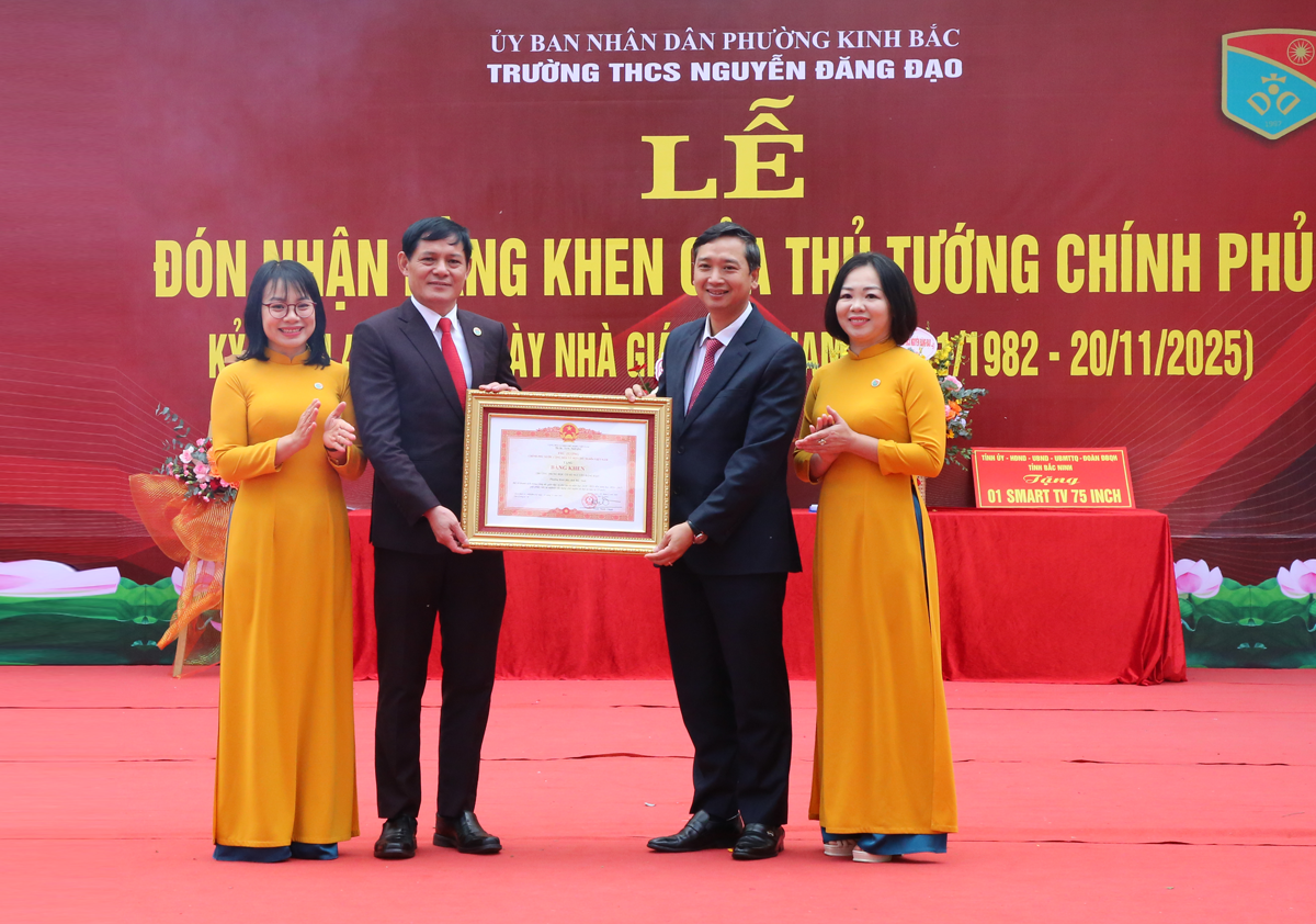 (BNP) - On the morning of November 20, Nguyen Dang Dao Secondary School (Kinh Bac Ward, Bac Ninh Province) held a ceremony to celebrate the 43rd anniversary of Vietnamese Teachers' Day (November 20) and received a Certificate of Merit from the Prime Minister.