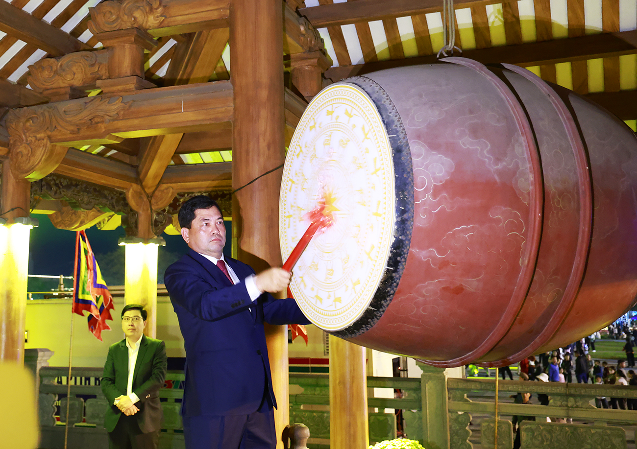 Secretary Nguyen Hong Thai beat the drum to officially open the festival