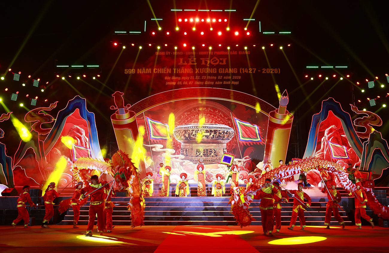 (BNP) - On February 21st (the 5th day of the Lunar New Year), at the Xương Giang Victory Site, a special national historical monument, the Party Committee, People's Council, People's Committee, and Fatherland Front Committee of Bac Giang ward organized the opening ceremony of the 599th Anniversary of the Xương Giang Victory (1427 - 2026).