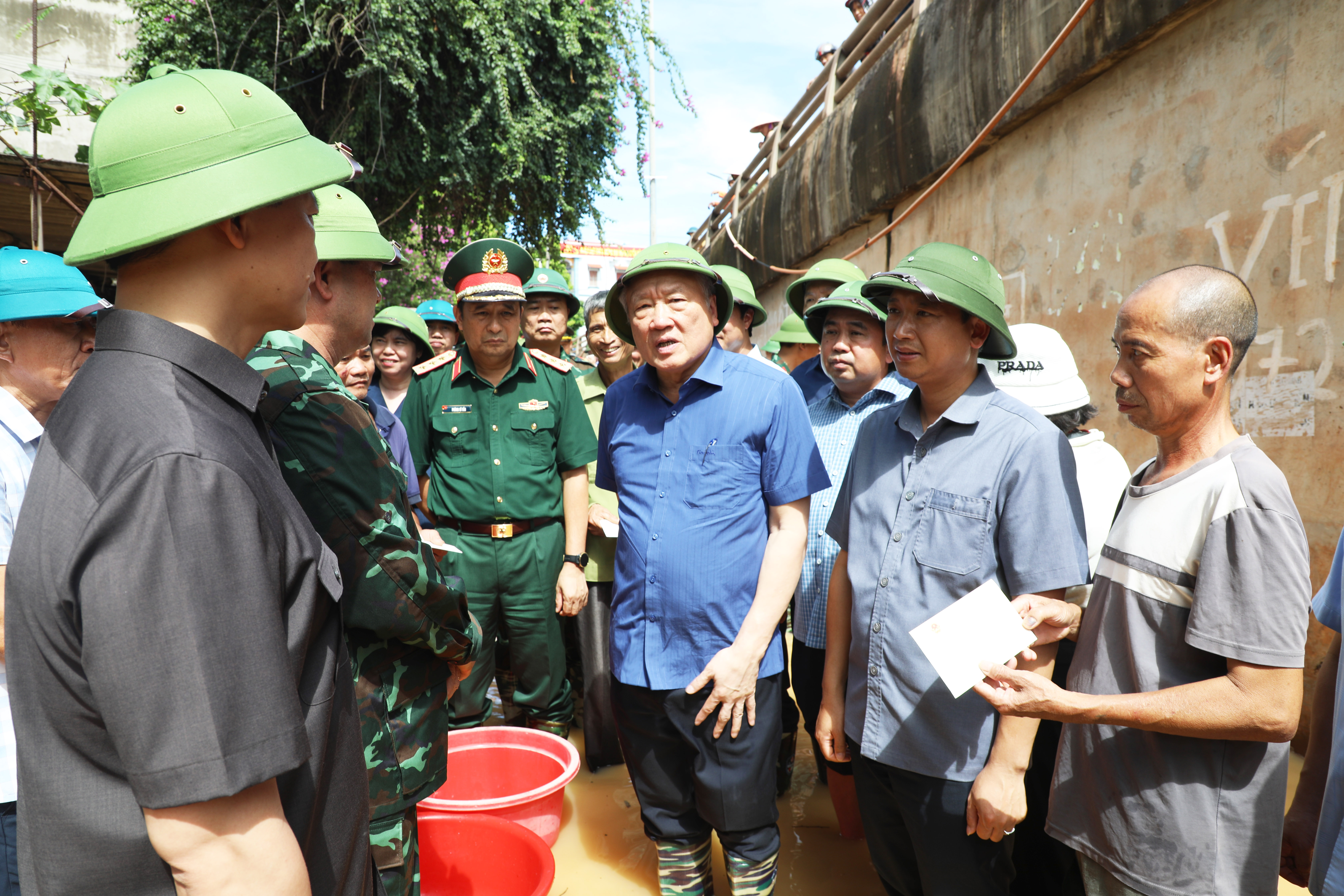 He also requested the authorities to urgently support people affected by floods and storms, quickly stabilize their lives, activities and production, especially pay attention to ensuring hygiene after the flood, providing electricity, domestic water and raw materials for production to people affected by storms and floods; have a plan to raise the level of the dike after the recent historic flood to ensure the safety of the dike system, serving the task of socio-economic development of the locality.