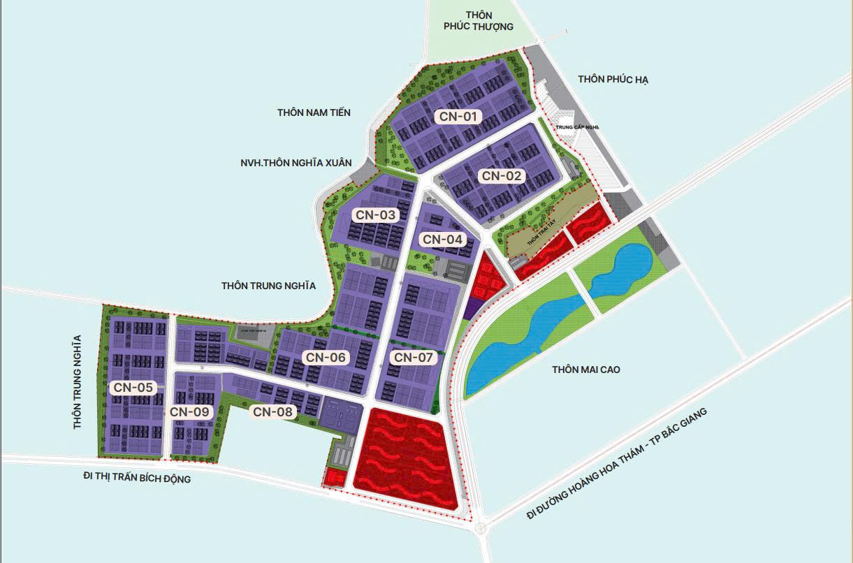 - To the west, it borders the urban, service, and industrial development area of ​​Bac Giang province.