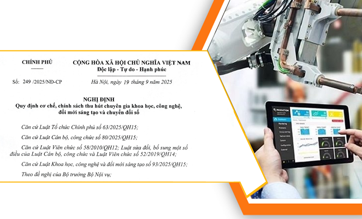 Theo đề nghị của Bộ trưởng Bộ Nội vụ, Chính phủ đã ban hành Nghị định số 249/2025/NĐ-CP ngày 19/9/2025 quy định cơ chế, chính sách thu hút chuyên gia khoa học, công nghệ, đổi mới sáng tạo và chuyển đổi số.