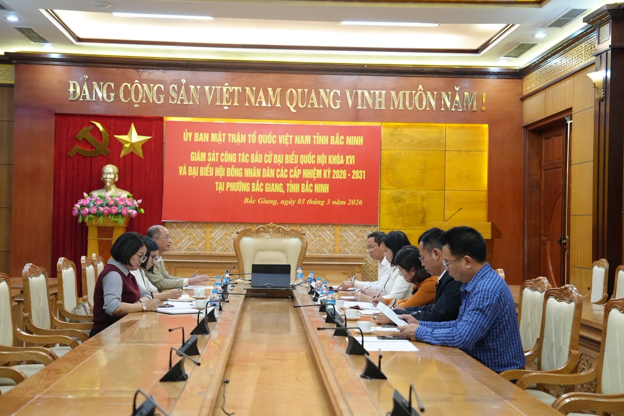 Thực hiện Kế hoạch số 02/KH-TBTT ngày 26/02/2026 của Tiểu ban tuyên tuyền cuộc bầu cử Quốc hội khoá XVI và đại biểu HĐND các cấp nhiệm kỳ 2026-2031 về việc kiểm tra công tác tuyên truyền bầu cử Quốc hội khoá XVI và đại biểu HĐND các cấp nhiệm kỳ 2026-2031. Căn cứ vào Kế hoạch trên, đồng chí Lê Anh Tuấn, Phó Giám đốc Sở Tư pháp - thành viên đoàn kiểm tra số 1 được phân công kiểm tra 12 phường, xã: Đa Mai, Bắc Giang, Tân Tiến, Tiền Phong, Tân An, Yên Dũng, Việt Yên, Tự Lan, Vân Hà, Nếnh, Cảnh Thuỵ, Đồng Việt. Thực hiện sự phân công từ ngày 03/03/2026 đến ngày 06/3/2026, đồng chí Lê Anh Tuấn đã đi kiểm tra thực tế tại 09/12 phường, xã; 03 phường, xã (Tự Lạn, Việt Yên, Cảnh Thuỵ) kiểm tra thông qua báo cáo.