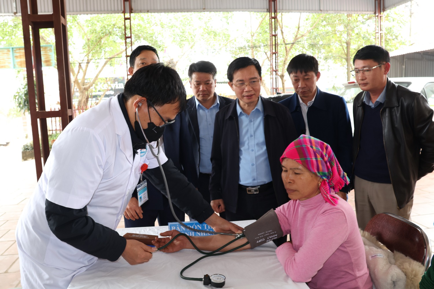 Lãnh đạo Sở Y tế cùng tổ công tác kiểm tra, hướng dẫn triển khai công tác khám chữa bệnh tại Trạm Y tế xã Đại Sơn.