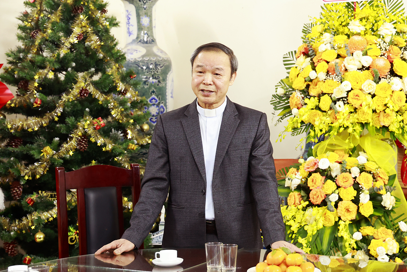 Parish priest Nguyen Van Khiem respectfully expresses his gratitude for the attention, visits, and congratulations from the provincial leaders.