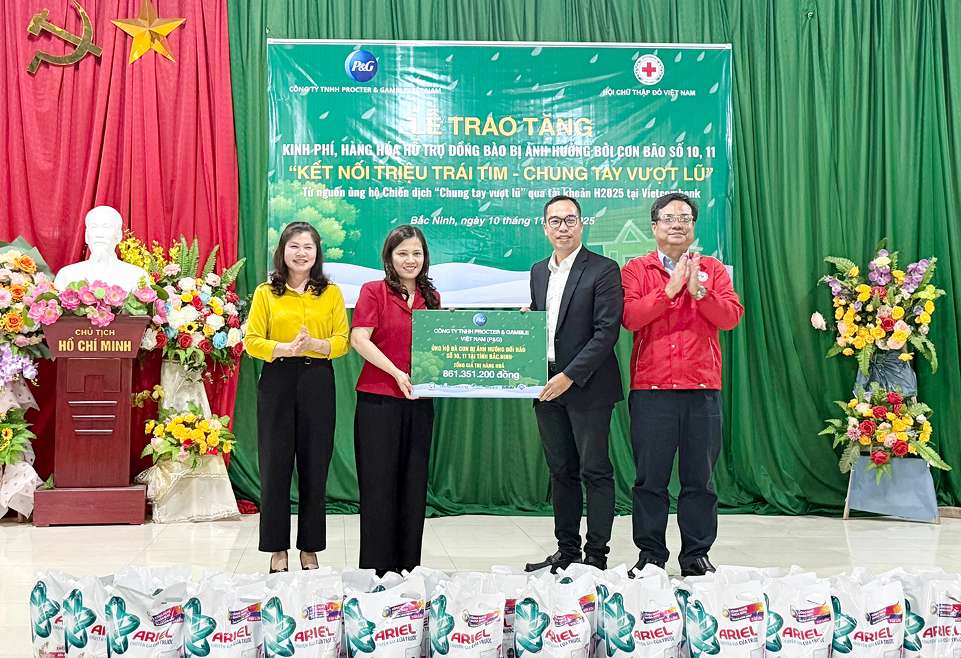 Also at the program, P&G Vietnam Company presented a support logo of more than VND 2.5 billion to the Vietnam Red Cross Society and more than VND 800 million to the Bac Ninh Red Cross Society to support the campaign "Connecting millions of hearts - Joining hands to overcome floods" launched by the Vietnam Red Cross Society.