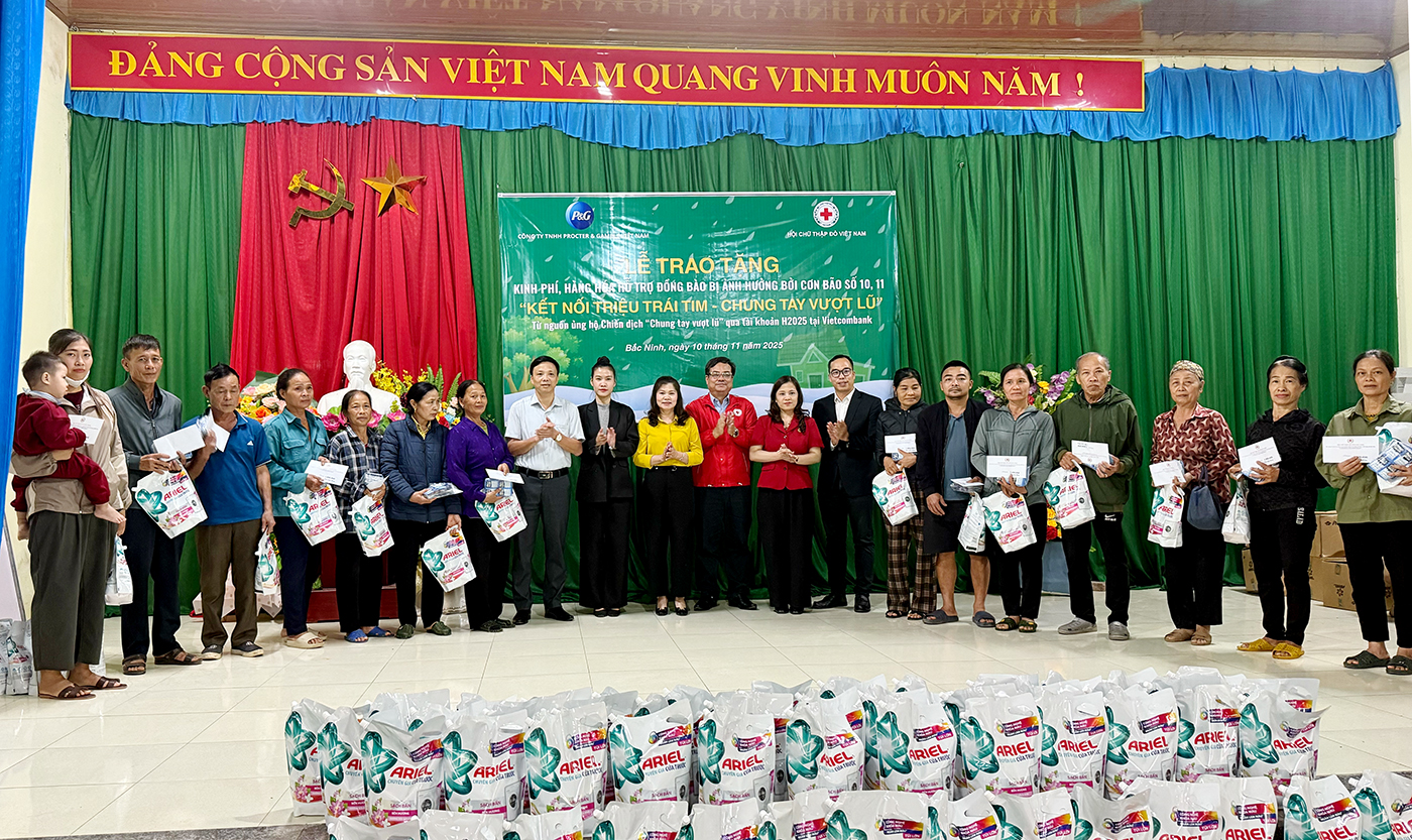 At the program, the Vietnam Red Cross Central Committee, the Bac Ninh Provincial Red Cross and P&G Vietnam Company presented financial support and gifts to 200 households affected by storms No. 10 and 11 with a total value of cash and goods of more than VND 382 million. This is an activity of profound humanitarian significance, demonstrating the spirit of "mutual love and support", contributing to helping households quickly overcome difficulties and stabilize their lives.