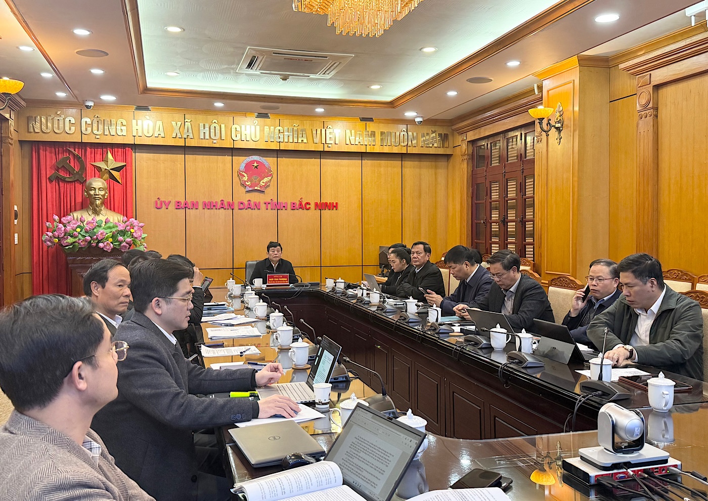 Sáng 08/01, Chính phủ tổ chức Hội nghị trực tuyến toàn quốc với chính quyền địa phương nhằm đánh giá kết quả năm 2025 và triển khai nhiệm vụ năm 2026. Đồng chí Tô Lâm, Tổng Bí thư Ban Chấp hành Trung ương Đảng dự và chỉ đạo hội nghị. Dự hội nghị tại trụ sở Chính phủ có các đồng chí Ủy viên Bộ Chính trị: Chủ tịch nước Lương Cường, Thủ tướng Chính phủ Phạm Minh Chính, Chủ tịch Quốc hội Trần Thanh Mẫn, Thường trực Ban Bí thư Trần Cẩm Tú; các đồng chí Ủy viên Bộ Chính trị, Ủy viên Ban Bí thư, Ủy viên Trung ương, lãnh đạo Đảng, Nhà nước, lãnh đạo các ban, bộ, ngành Trung ương. Chủ trì hội nghị tại điểm cầu tỉnh Bắc Ninh có các đồng chí: Nguyễn Hồng Thái, Ủy viên Trung ương Đảng, Bí thư Tỉnh ủy; Nguyễn Việt Oanh, Phó Bí thư Tỉnh ủy, Chủ tịch HĐND tỉnh; Phạm Hoàng Sơn, Phó Bí thư Tỉnh ủy, Chủ tịch UBND tỉnh. Dự hội nghị có các đồng chí Phó Chủ tịch UBND tỉnh; đại diện lãnh đạo các sở, ngành, cơ quan, đơn vị của tỉnh.